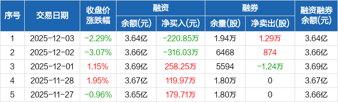 埃夫特:融资净偿还220.85万元,融资余额3.64亿元(12-03)