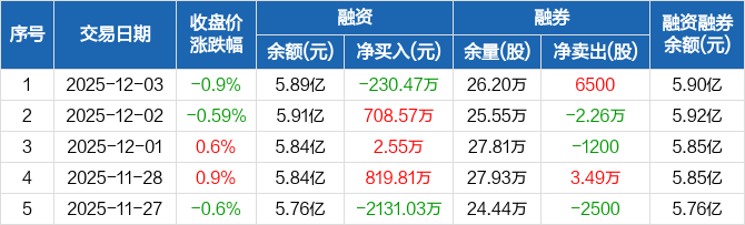 晶科科技:融资净偿还230.47万元,融资余额5.89亿元(12-03)