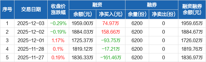 A50ETF:融资净买入74.97万元,融资余额1959万元(12-03)