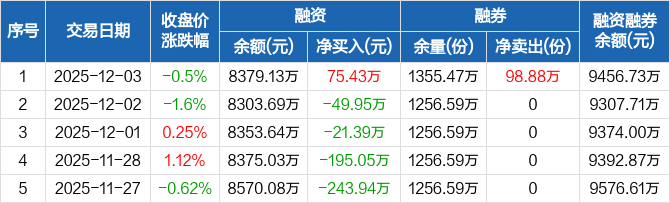 光伏ETF:融资净买入75.43万元,融资余额8379.13万元(12-03)
