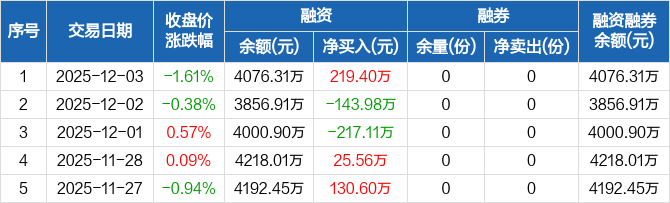 港股科技50ETF:融资净买入219.4万元,融资余额4076.31万元(12-03)