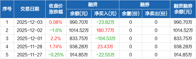 稀土ETF:融资净偿还23.82万元,融资余额990.7万元(12-03)
