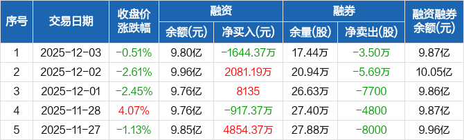 广东宏大:融资净偿还1644.37万元,融资余额9.8亿元(12-03)