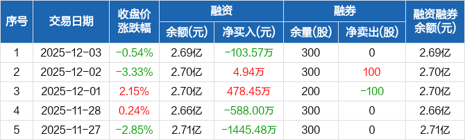 濮阳惠成:融资净偿还103.57万元,融资余额2.69亿元(12-03)