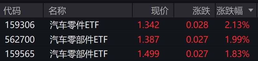 受盘面影响,跟踪中证汽车零部件主题指数的ETF涨约2%。