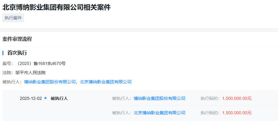 博纳影业成被执行人,执行标的150万元