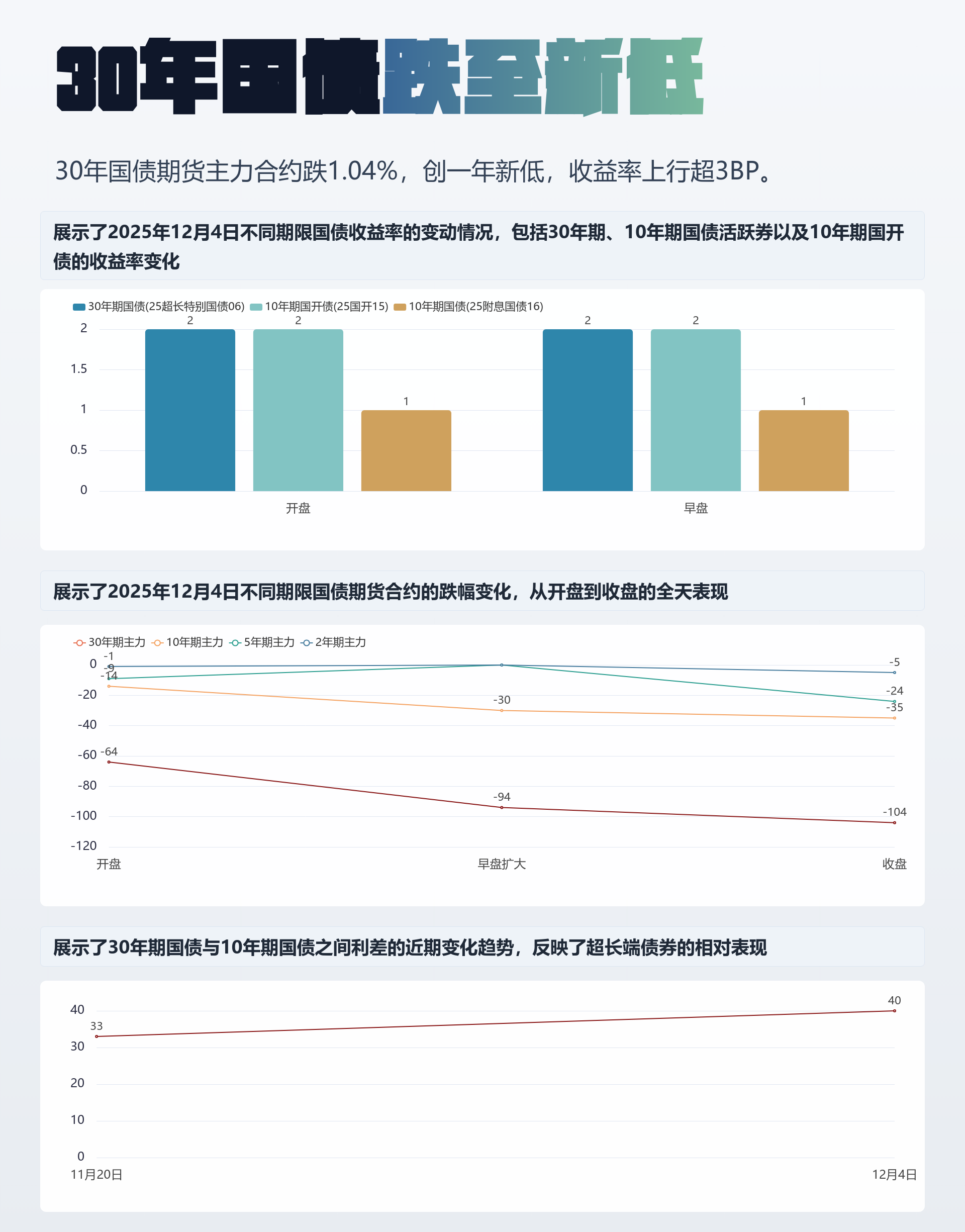 今天债市这波调整有点猛啊,30年期国债期货直接跌破了去年11月的低点。主力合约收盘跌了1.04%,报112.56元,创下2024年11月25日以来的新低。这波调整其实从11月中旬就开始了,30年国债活跃券收益率已经连续上行了10个BP。