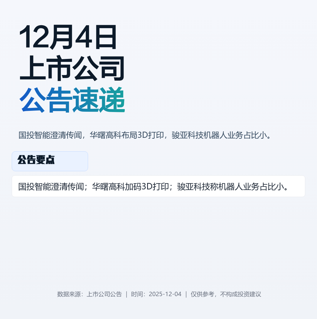 从今晚这一批公告来看,市场热点还是在科技制造领域,特别是3D打印、机器人这些方向。但上市公司对市场传闻和概念炒作的澄清也很及时,这对维护市场健康发展很重要。接下来可以继续关注这些公司的后续动作。