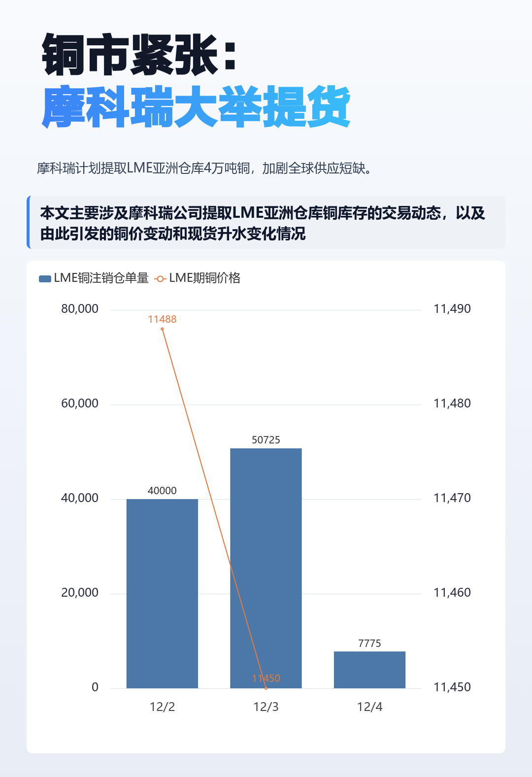 1. 库存紧张:LME的铜库存本来就不多,这次提货直接占到了总库存的35%,相当于一下子掏空了亚洲仓库的一大块。