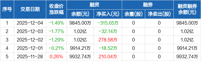 菲沃泰:融资净偿还315.65万元,融资余额9845万元(12-04)