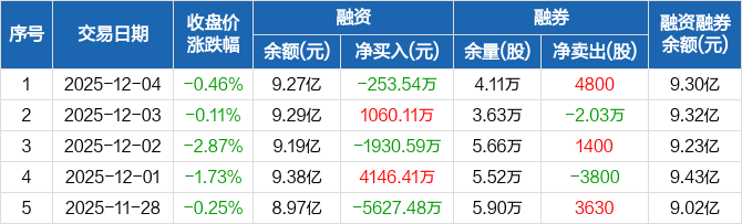 长飞光纤:融资净偿还253.54万元,融资余额9.27亿元(12-04)