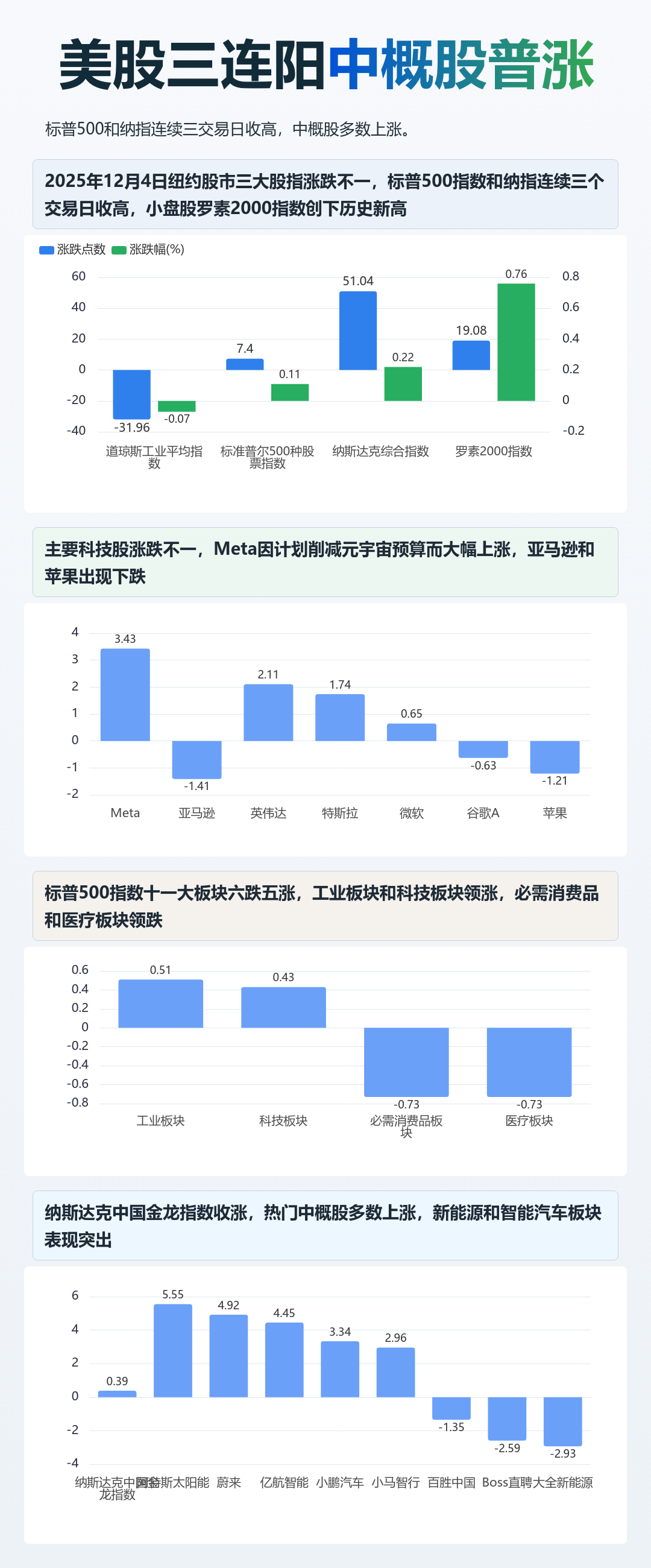美股市场这几天有点意思,标普500和纳指已经连涨三天了,小盘股罗素2000指数更是创了历史新高。虽然道指微跌0.07%,但整体市场情绪还是偏乐观的。