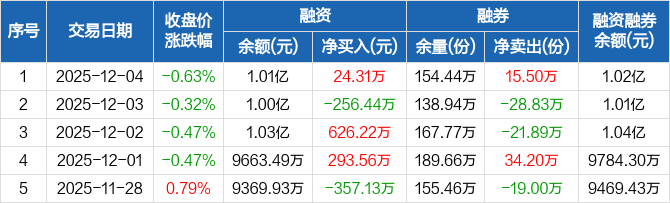 养殖ETF:融资净买入24.31万元,融资余额1.01亿元(12-04)