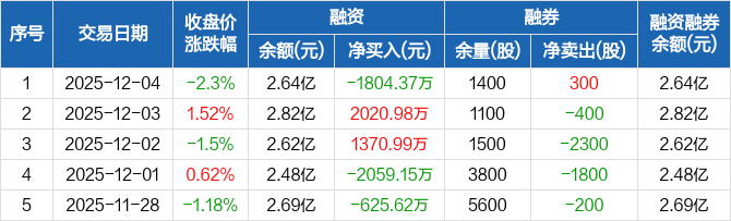 鼎泰高科:融资净偿还1804.37万元,融资余额2.64亿元(12-04)
