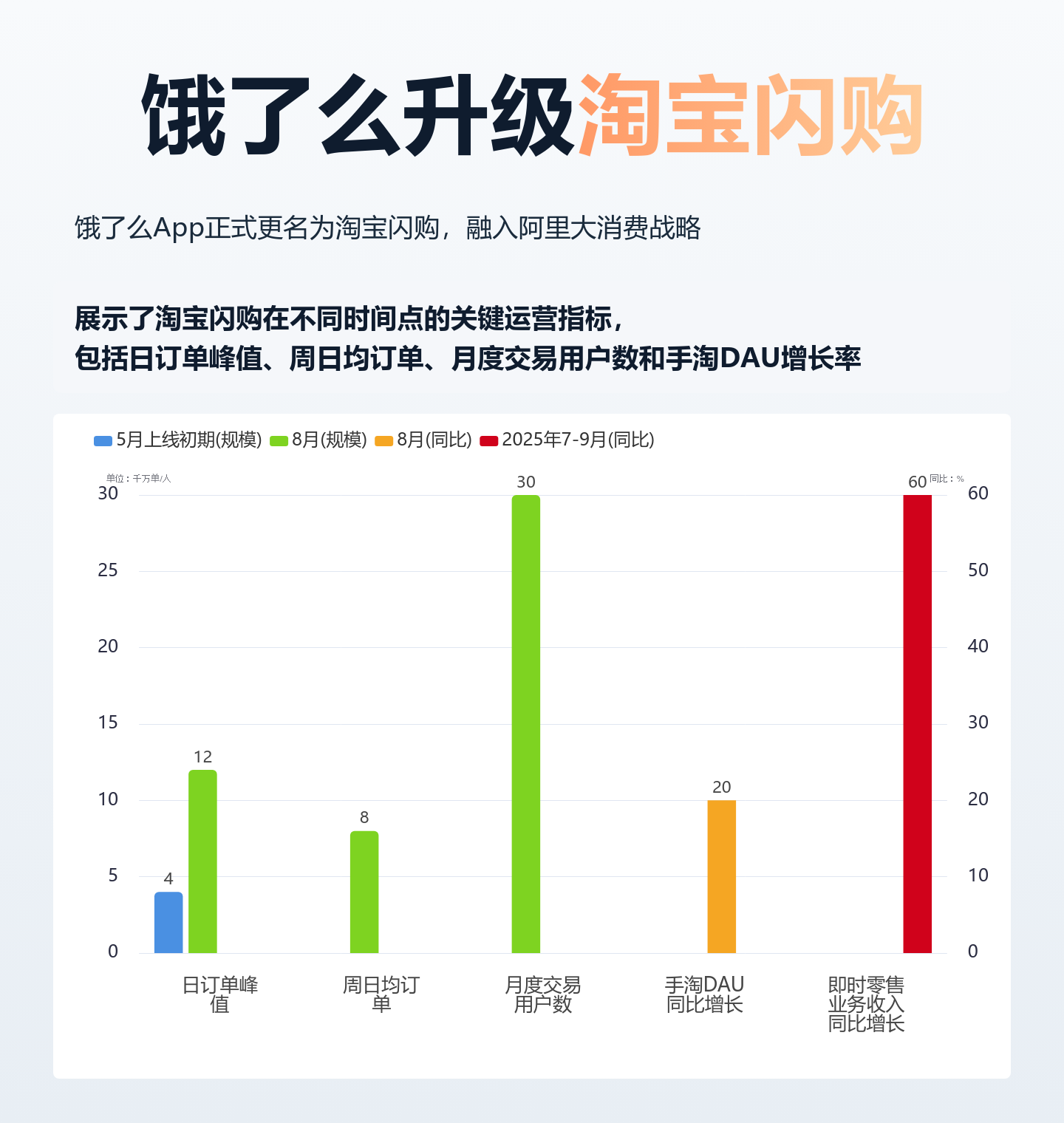这波操作其实早有预兆。今年5月淘宝闪购刚上线时,日订单量就冲到4000万单,直接把阿里高层都惊到了。最新数据显示,8月周日均订单稳定在8000万单,月度交易用户突破3亿大关,直接带动手淘DAU暴涨20%。这种增长势头,难怪阿里要下决心把资源集中到淘宝这个超级APP上。