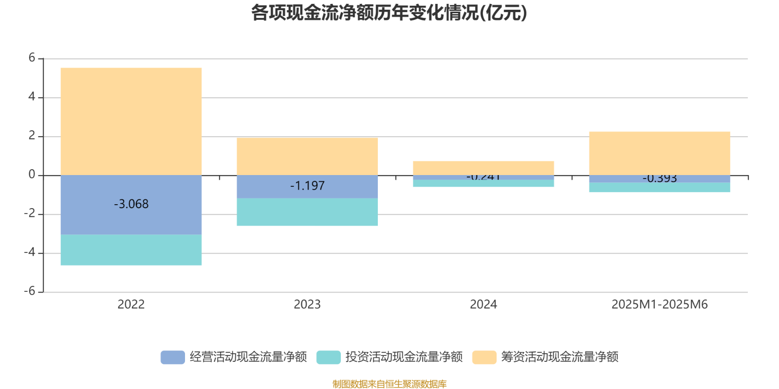 2025年1月至6月,公司经营活动现金流净额为-3929.2万元,同比减少4931.1万元;筹资活动现金流净额2.23亿元,同比增加2.08亿元;投资活动现金流净额-4884万元,上年同期为-3466万元。