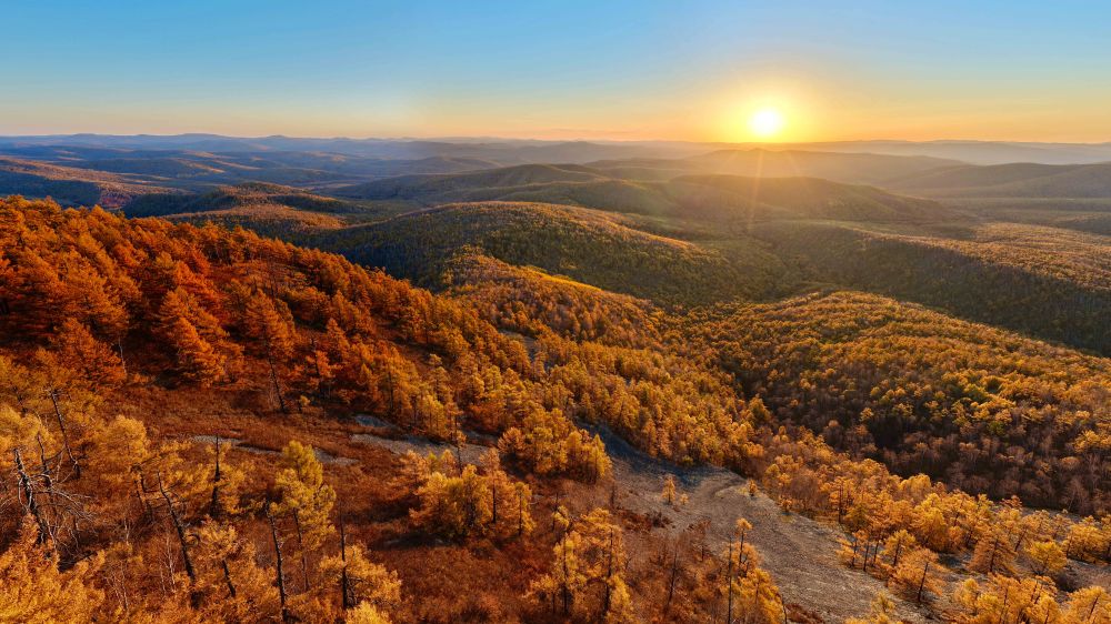 这是2025年9月28日在内蒙古牙克石市绰河源镇拍摄的大兴安岭林海日出(无人机拼接照片)。新华社记者马金瑞摄