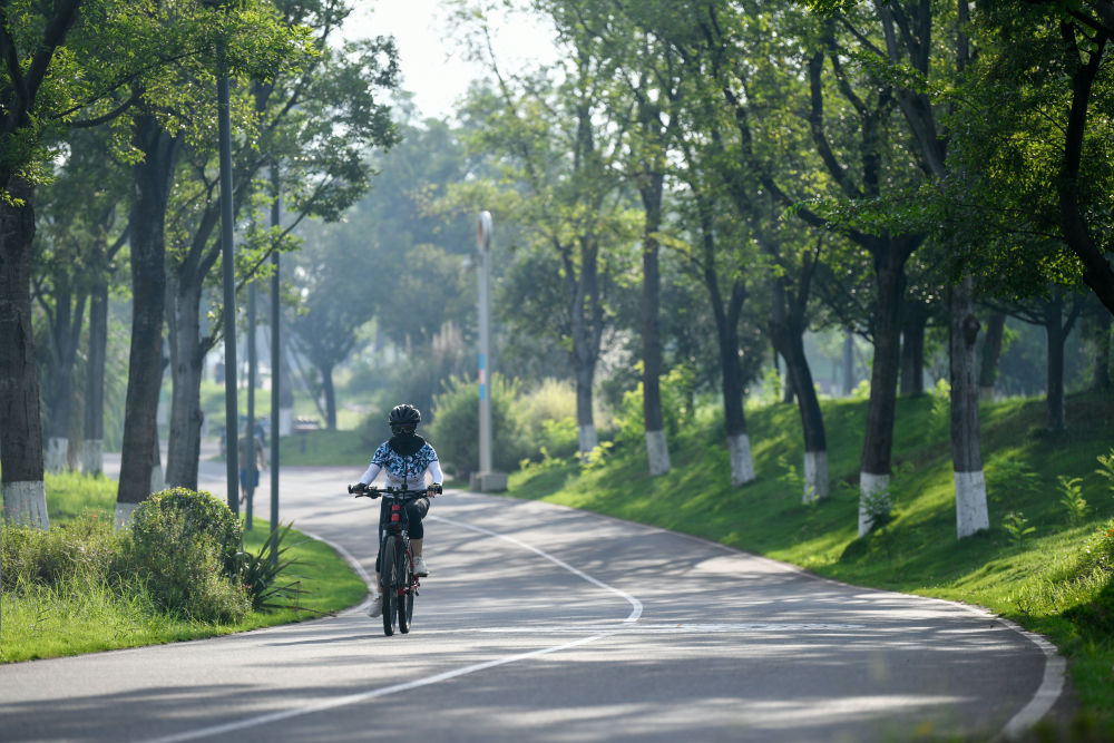 市民在成都天府绿道骑行(2023年7月16日摄)。新华社记者胥冰洁摄