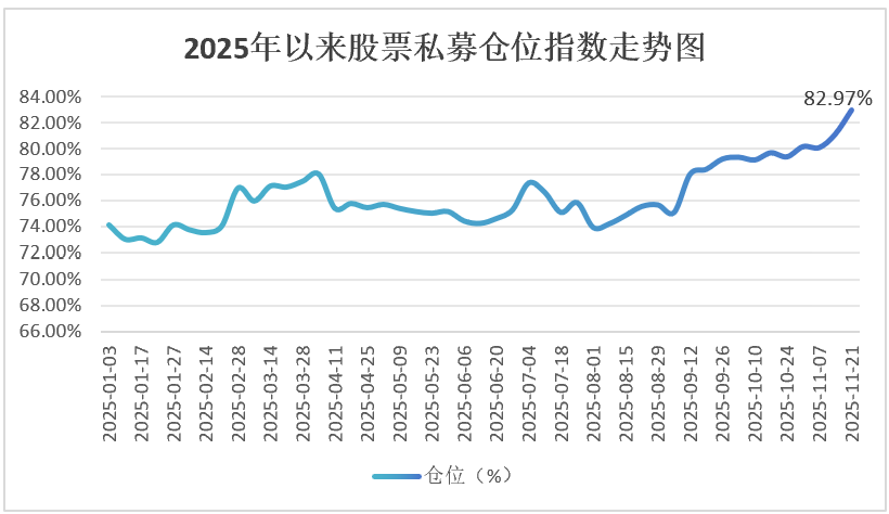 第三方平台统计数据显示,截至11月21日,股票私募仓位指数达82.97%,较此前一周上涨1.84个百分点,再次刷新年内新高。