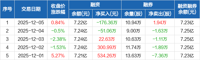 爱施德:融资净偿还176.36万元,融资余额7.22亿元(12-05)
