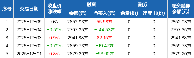 中药ETF:融资净买入55.58万元,融资余额2852.93万元(12-05)