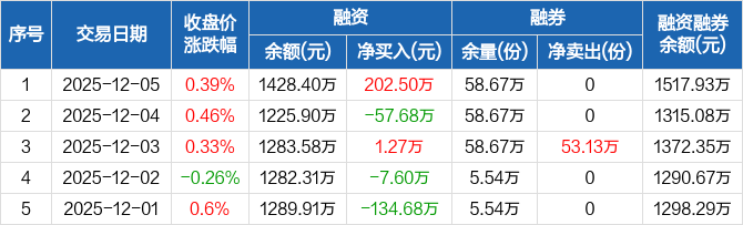 家电ETF:融资净买入202.5万元,融资余额1428.4万元(12-05)