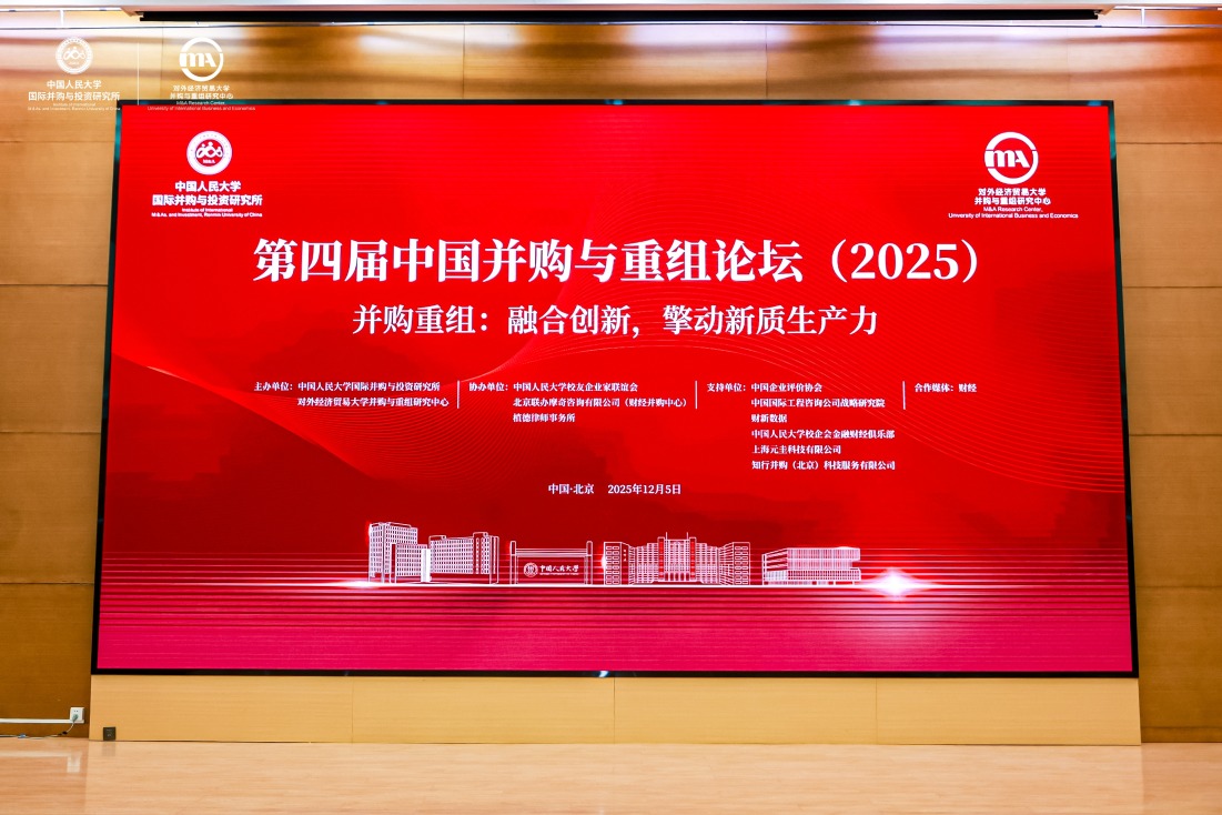 本报讯 (记者于宏)近年来,并购重组日渐成为资本市场热议的话题。12月5日,中国人民大学国际并购与投资研究所、对外经济贸易大学并购与重组研究中心联合主办的第四届中国并购与重组论坛(2025)在京举行,论坛以“并购重组:融合创新,擎动新质生产力”为主题,围绕并购重组如何赋能科技创新、助力企业转型升级等议题展开探讨。