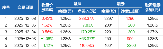 华兴源创:融资净买入288.37万元,融资余额1.29亿元(12-08)