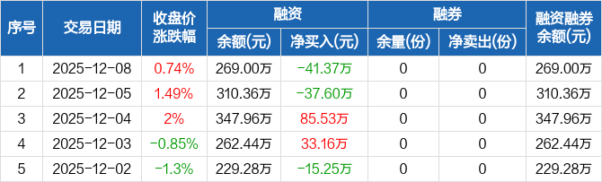 机器人ETF南方:融资净偿还41.37万元,融资余额269万元(12-08)