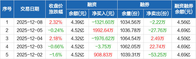 芯片ETF:融资净偿还1321.6万元,融资余额4.39亿元(12-08)