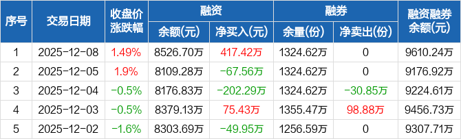 光伏ETF:融资净买入417.42万元,融资余额8526.7万元(12-08)