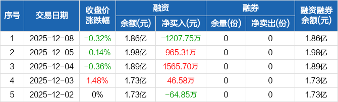 纳斯达克ETF:融资净偿还1207.75万元,融资余额1.86亿元(12-08)