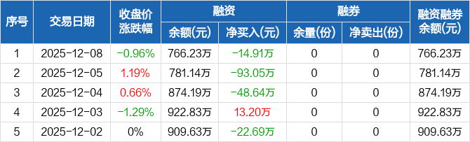 恒生国企ETF:融资余额766.23万元,创近一年新低(12-08)