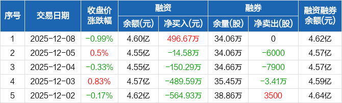 仁和药业:融资净买入496.67万元,融资余额4.6亿元(12-08)