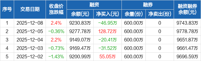 芯片ETF龙头:融资净偿还46.95万元,融资余额9230.83万元(12-08)