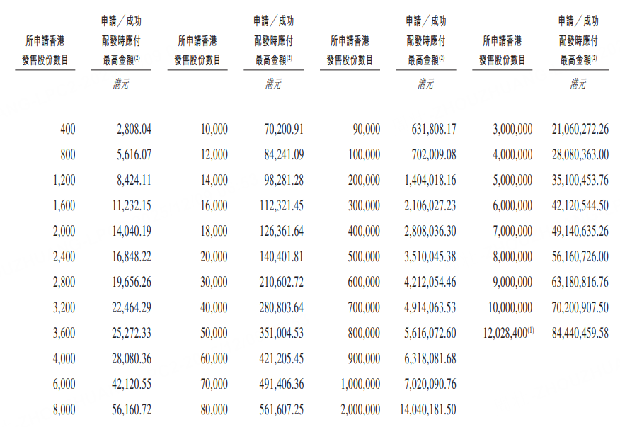 乙组门槛为80万股,申购所需资金约561.61万港元。