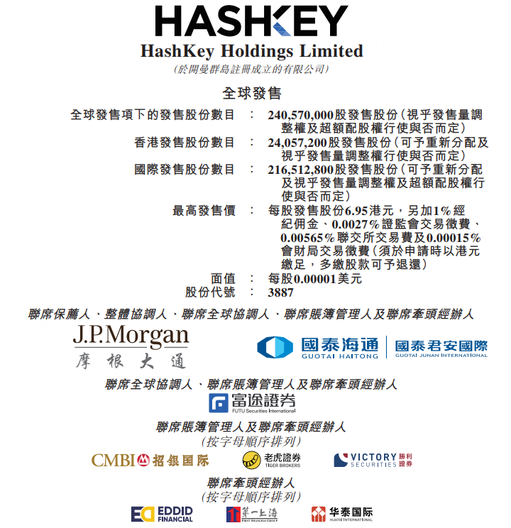 12月9日,HASHKEY HLDGS(03887)于12月9日-12月12日招股,公司拟全球发售2.41亿股,其中香港公开发售占约10%,国际发售占约90%,另有15%超额配股权。每股发售价格5.95-6.95港元。每手400股,预期股份将于12月17日开始在联交所买卖。