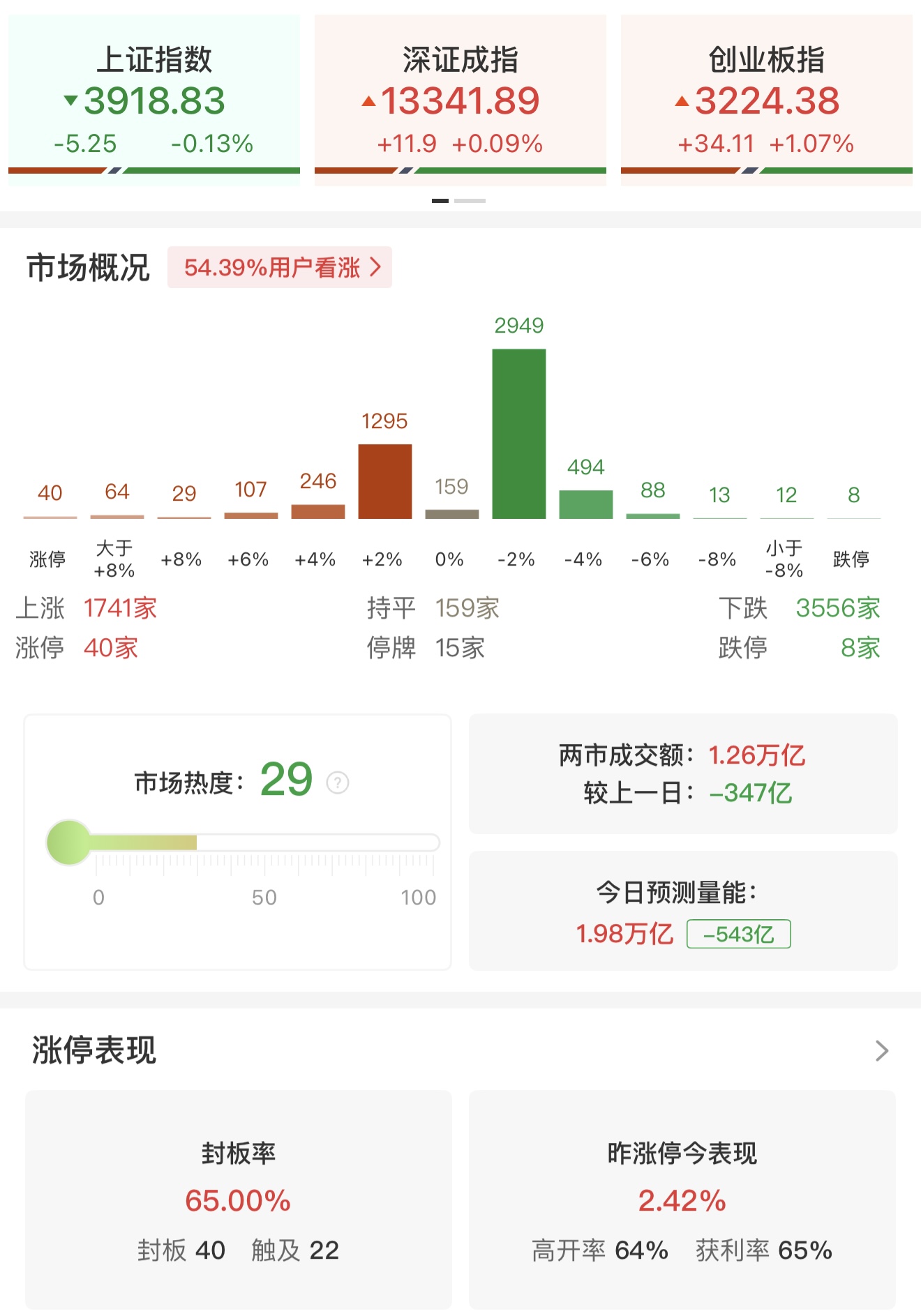 财联社12月9日电,三大指数早盘涨跌不一,沪指窄幅震荡,创业板指涨超1%。沪深两市半日成交额1.26万亿,较上个交易日缩量347亿。全市场超3500只个股下跌。从板块来看,算力硬件概念再度爆发,胜宏科技涨近9%,德科立20cm涨停。福建板块延续强势,安记食品6连板,舒华体育4连板,东百集团、厦门港务双双3连板。零售板块表现活跃,茂业商业、中央商场相继涨停。下跌方面,海南本地股集体大跌,新大洲A跌停。有色金属板块震荡走弱,中国中冶触及跌停。板块方面,算力硬件、零售、福建等板块涨幅居前,有色金属、海南、煤炭等板块跌幅居前。截至收盘,沪指跌0.13%,深成指涨0.09%,创业板指涨1.07%。