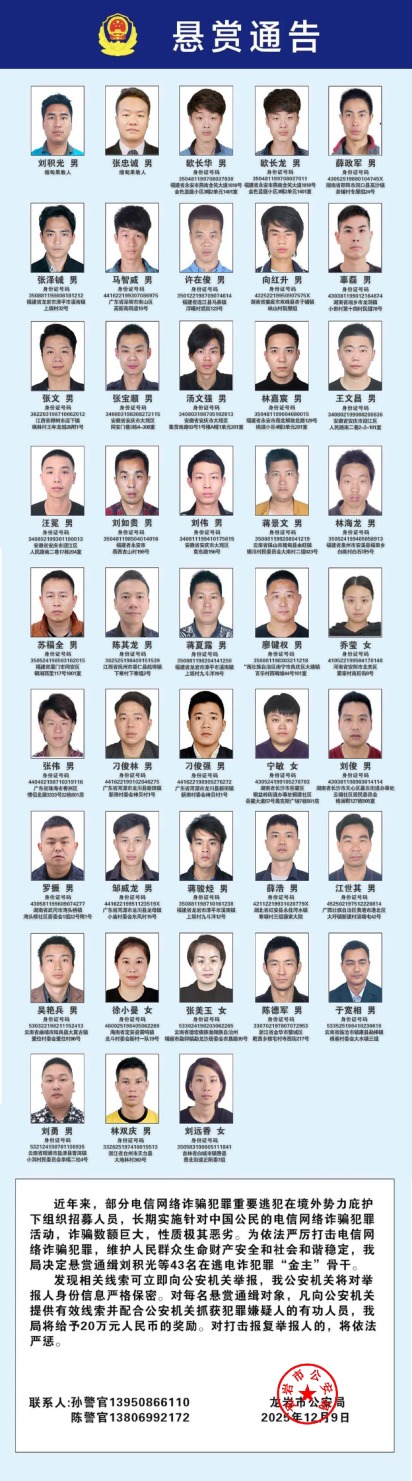 公安机关悬赏通缉!100名电诈在逃人员照片公布