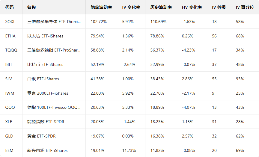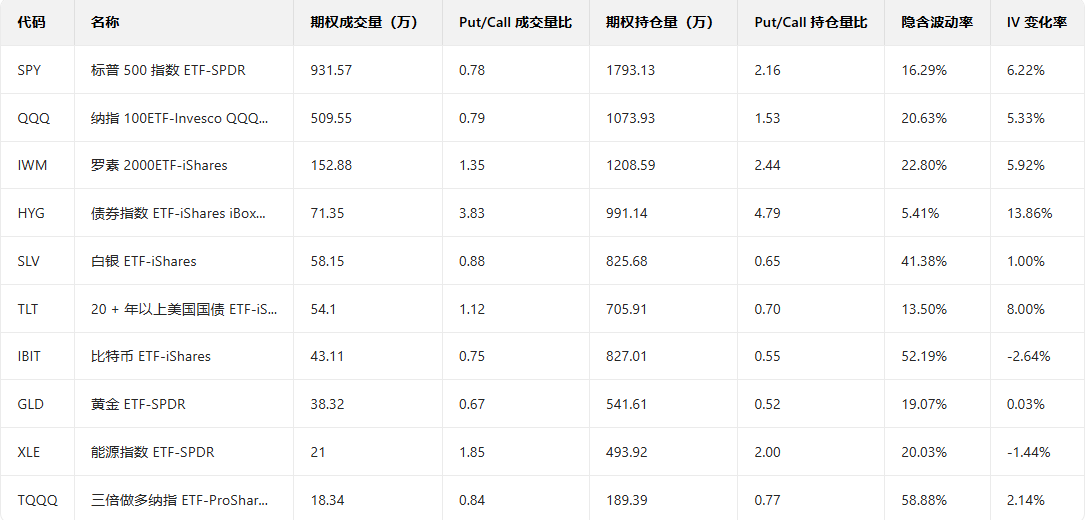 三、美股ETF期权成交榜美股ETF期权成交量排行榜前十