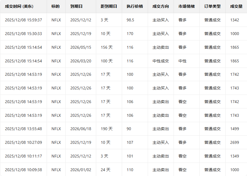 期权智投播报:奈飞多张Put单翻倍 收购华纳兄弟引发股价下行