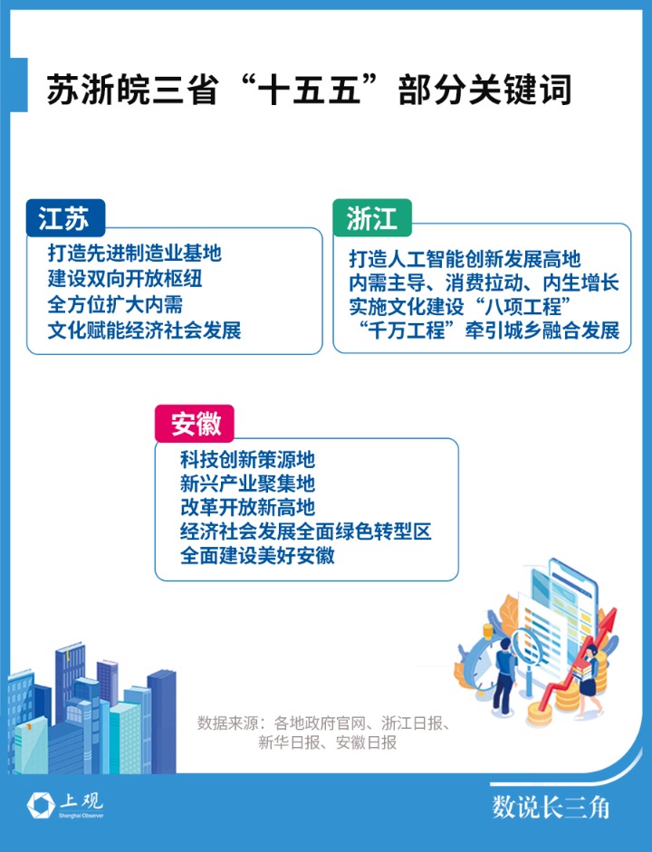在“十五五”规划的蓝图中,江苏、安徽与浙江三省提出一系列发展目标、重大任务和重大举措,展现出对高质量发展的坚定承诺与深远布局。