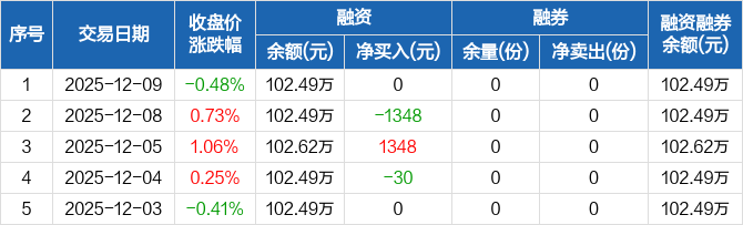中证A500ETF天弘:融资净买入0元,融资余额102.49万元(12-09)