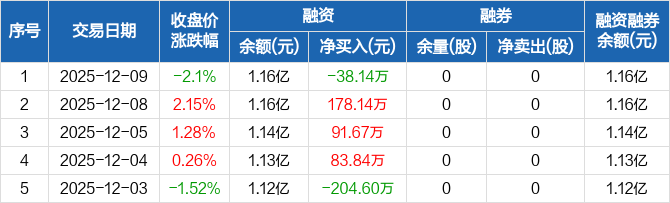 九鼎新材:融资净偿还38.14万元,融资余额1.16亿元(12-09)