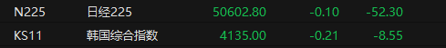 12月10日,日韩股市收盘齐跌。日经225指数收跌0.1%,报50602.8点;韩国综合指数收跌0.21%,报4135点。