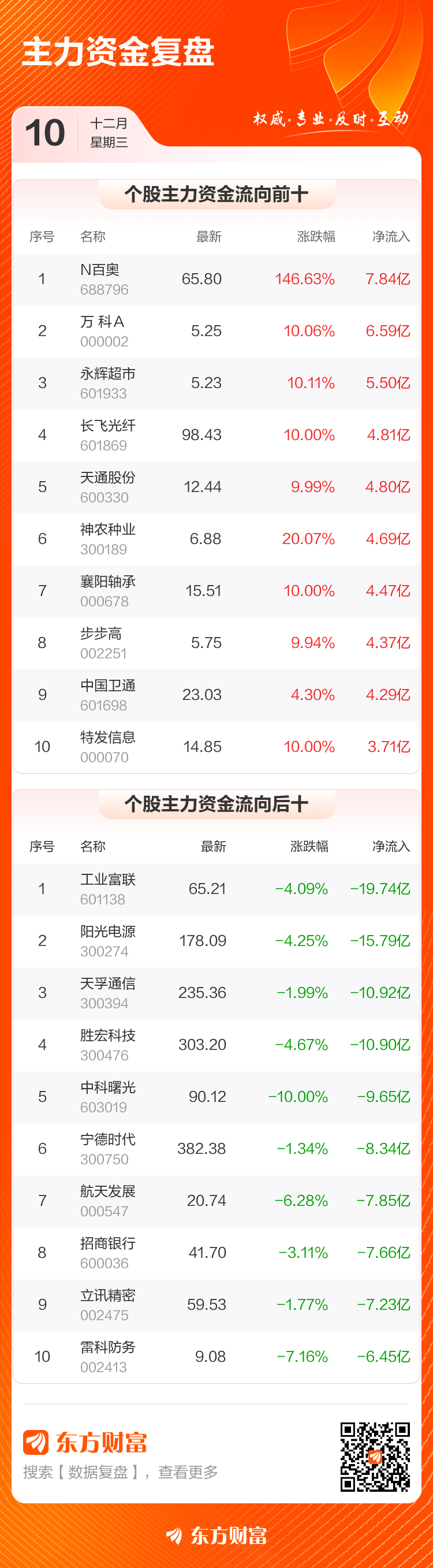主力复盘:7.84亿抢筹N百奥 19.74亿流出工业富联