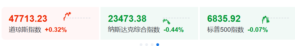 12月10日晚间,美股三大指数涨跌不一,道指微涨,纳指、标普指数下跌。