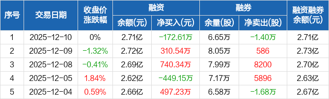 江航装备:融资净偿还172.61万元,融资余额2.71亿元(12-10)