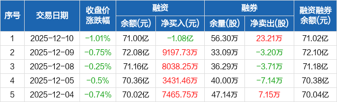 民生银行:融资净偿还1.08亿元,两市排名第13(12-10)