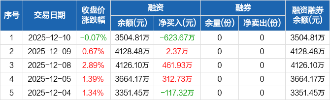 创50ETF:融资净偿还623.67万元,融资余额3504.81万元(12-10)